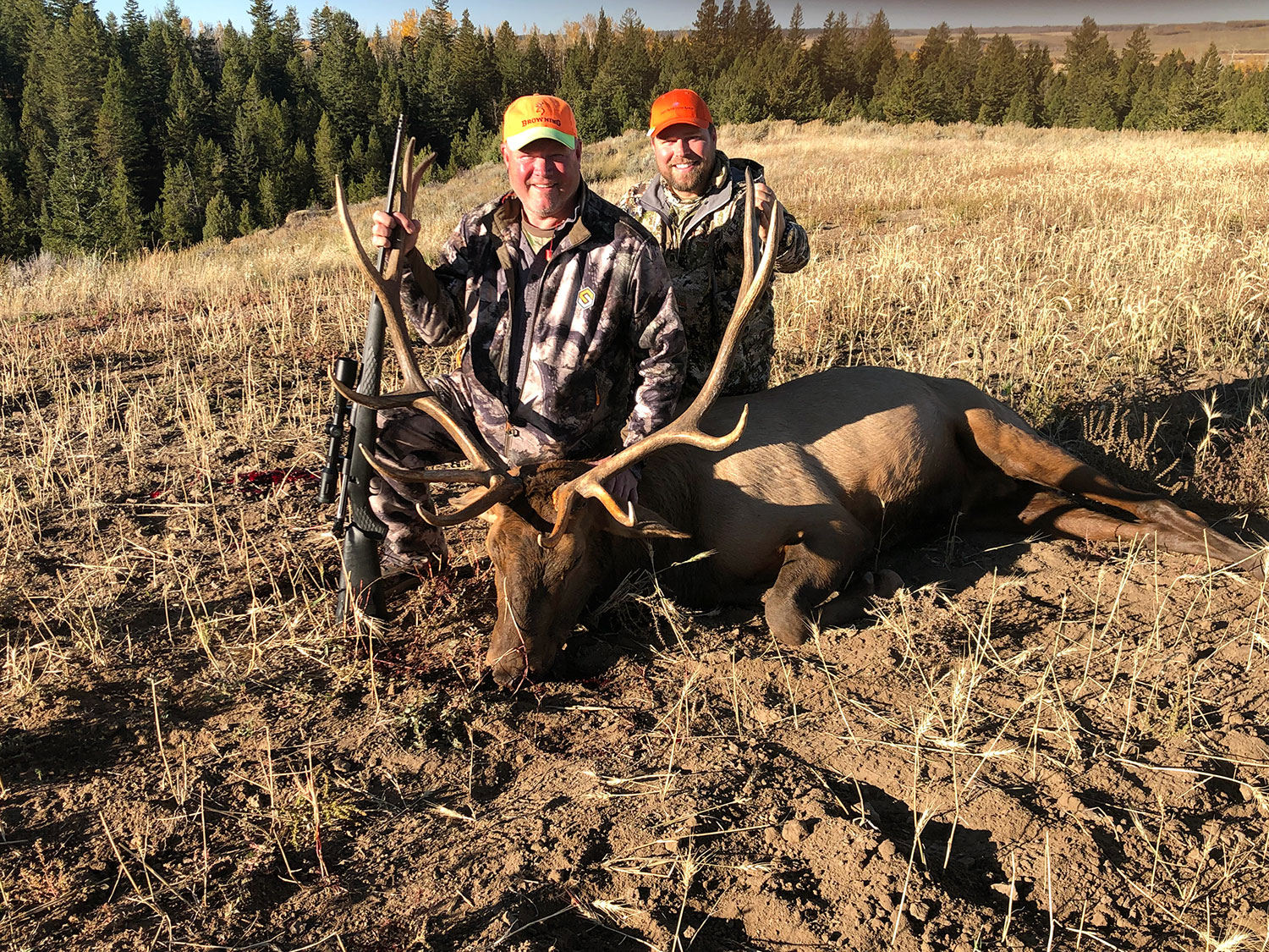 The monster elk Brian harvested is shown at the top of the page. Brian and Steve are very long-time friends and business partners. Now they share an experience they will remember for the rest of their lives. That’s a very big bull but there are many more on our 2,200-acre ranch every year.